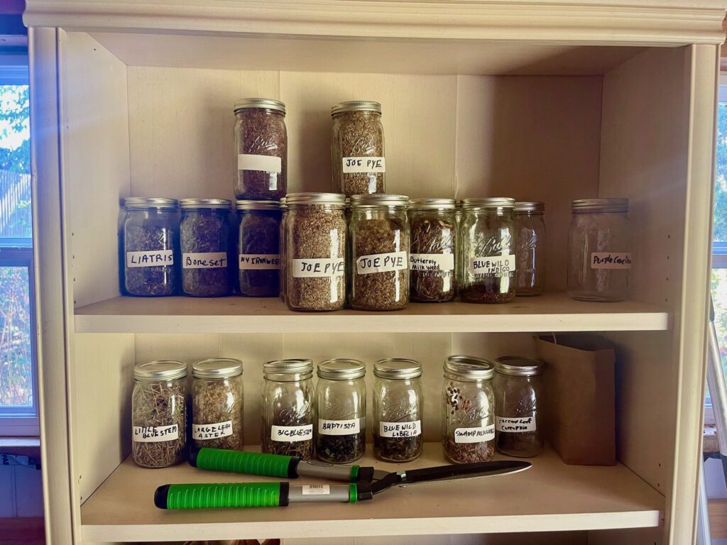 On Indigenous People’s Day the natives of Sayville — I speak of the High School’s local environmental club SWEEP and The Greater Sayville Junior Civic Association — came to harvest wildflower seeds from 20 different native pollinators. There were 14 students in all, along with SHS teacher Doug Shaw and Christine Sarni, the Civic Association’s President. We filled 24 mason jars with seed, and we are far from done.