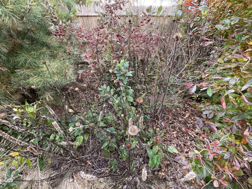 Here are some shots around the yard. This year we are letting everything wilt and decay in place.