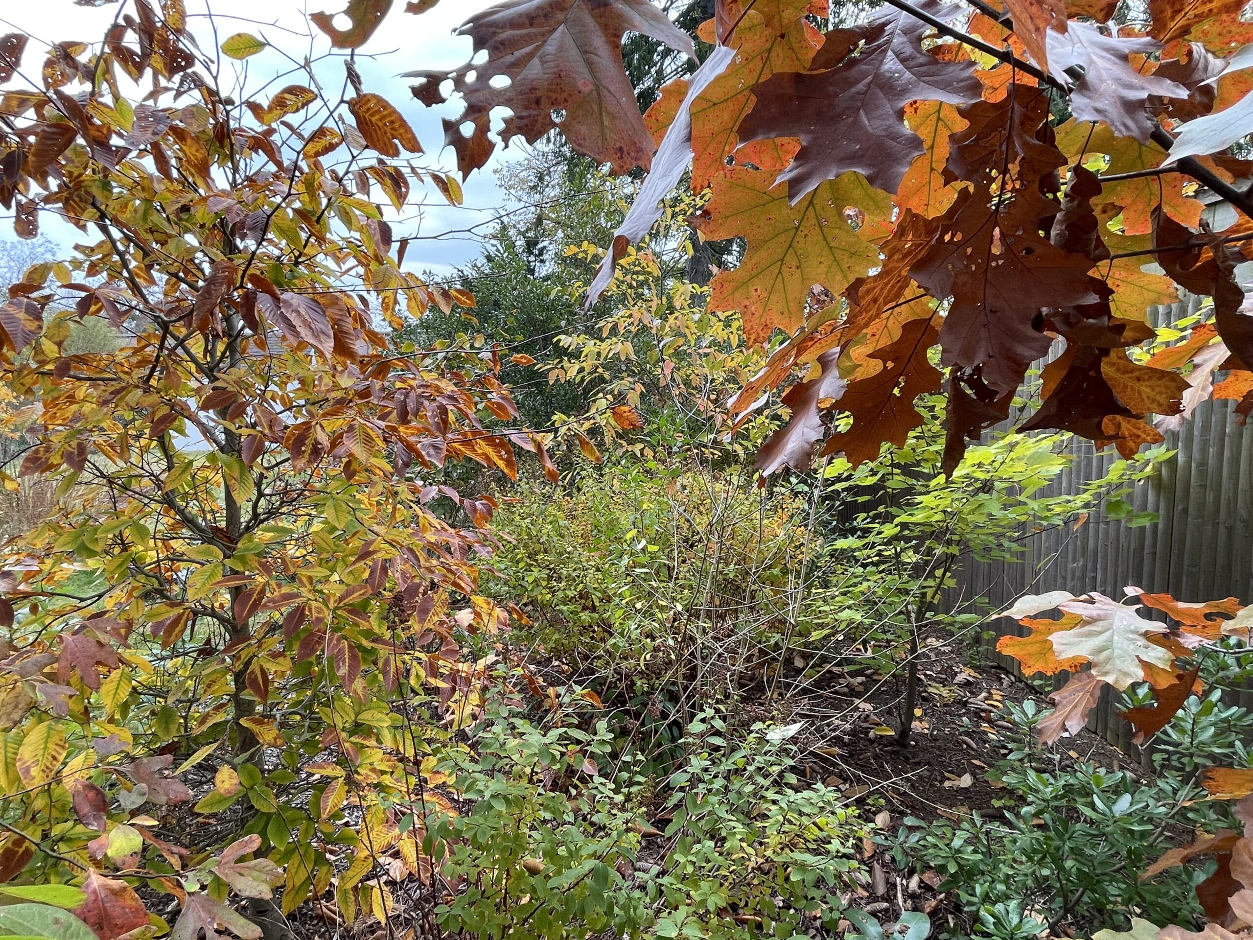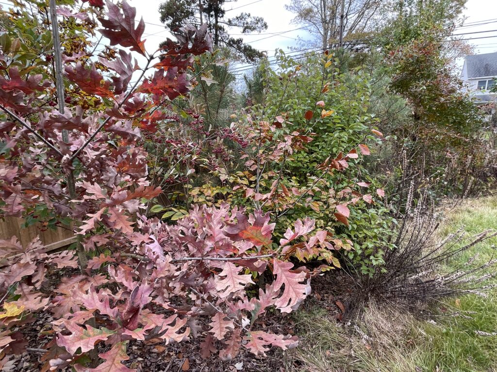 Oaks will often hold their leaves through the winter. The leaves, high in tannins, are tough to digest. The leaves defend the trees against foraging. It also takes two years for oak leaves to decay, so that they can provide nutrients, water, and protection for an oak grove for that extended period, which helps when there are droughts. To learn more about how important oaks are to our forests and to building habitats, we recommend reading Prof. Douglas Tallamy’s The Nature of Oaks: The Rich Ecology of Our Most Essential Native Trees.